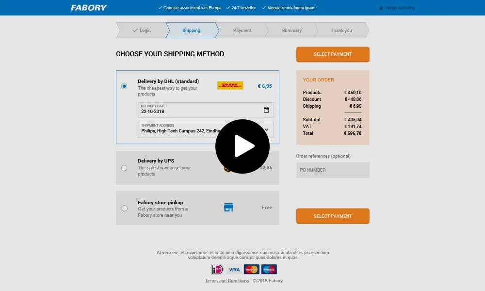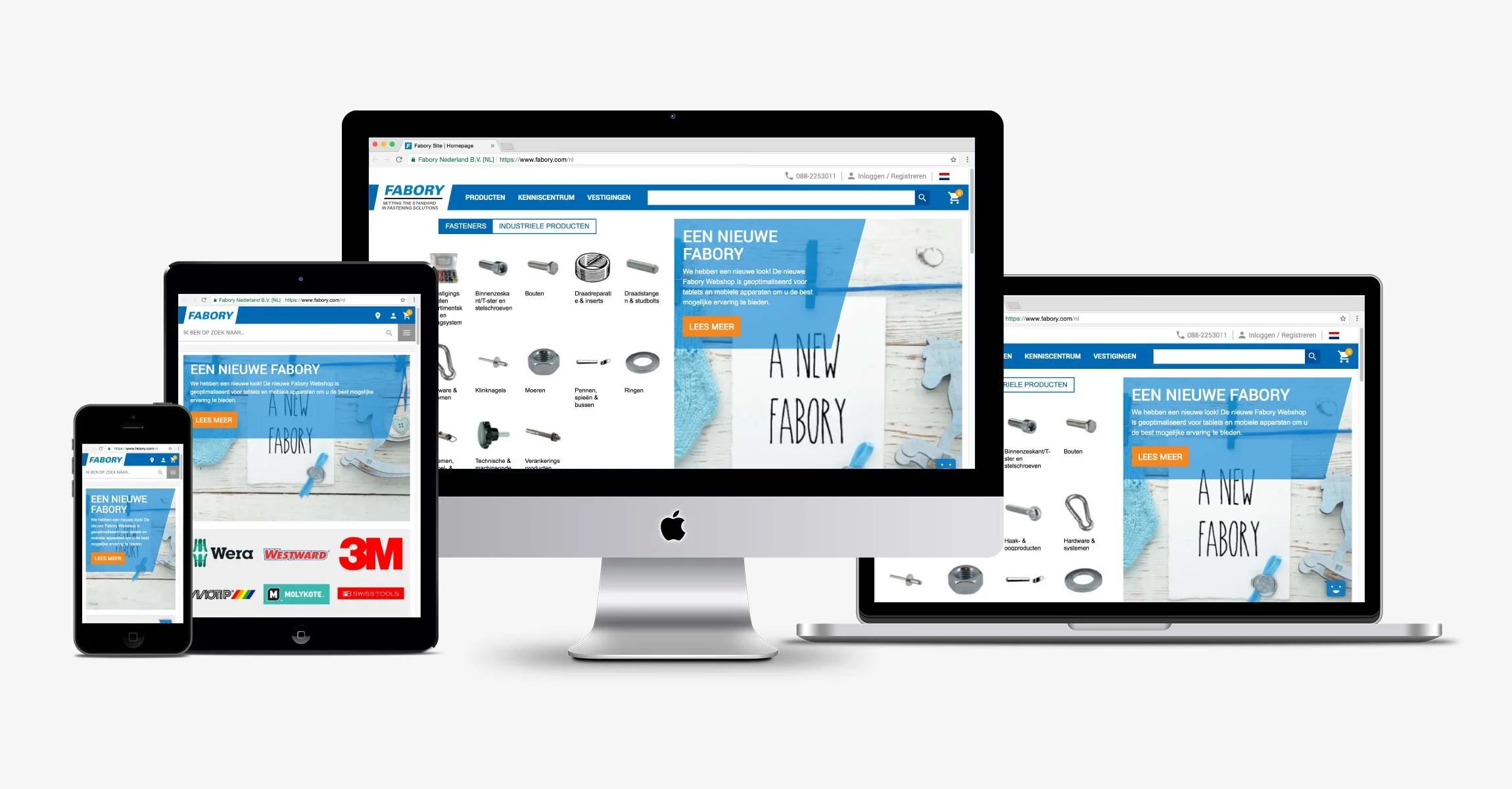 Voor Fabory heb ik de nieuwe look van hun e-commerce omgeving vormgegeven. De uitdagingen waren om de organisatie (cultuur) mee te krijgen, om terug te keren naar de kern (Clean the clutter), en design->development op een lijn te krijgen. Naast het UX werk maakte ik hier en daar nog wat visuele content t.b.v. marketing. Doorlooptijd van het project: 3 jaar. Fabory verkoopt oa bouten, moeren en schroeven in 10 landen binnen Europa. Naast het leveren aan tussenhandel en klanten als Philips en TNO hebben zo ook een eigen webshop voor het MKB. Fabory is onderdeel van het Amerikaanse Grainger welke een jaaromzet draait van 10 miljard.
